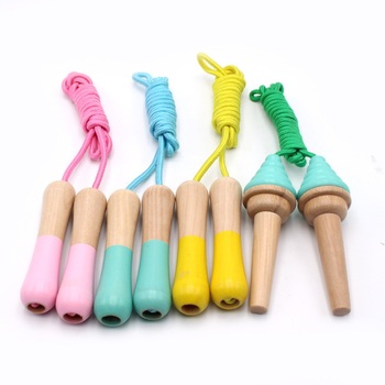 Cuerda de salto de dibujos animados de madera para niños, juguete de entrenamiento deportivo con logotipo personalizado para estudiantes, Primavera