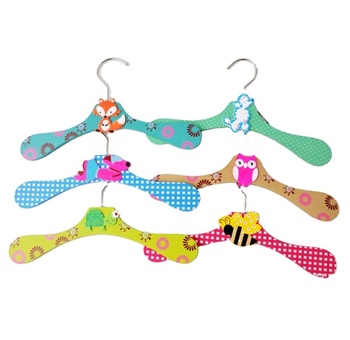 Linda percha de madera de dibujos animados con animales coloridos para almacenamiento de ropa